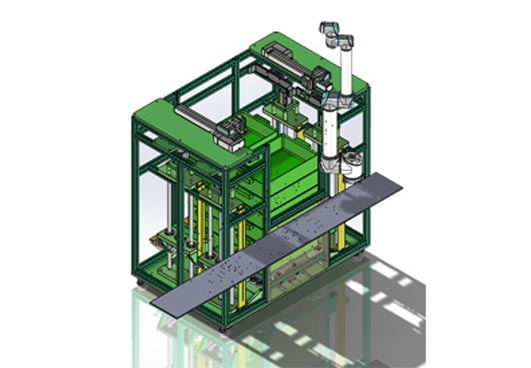 針對(duì)設(shè)備機(jī)臺(tái)的上下料需求,研發(fā)設(shè)計(jì)了面向小型零部件的,基于市場(chǎng)標(biāo)準(zhǔn)料箱的自動(dòng)上料箱系統(tǒng)。